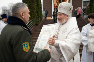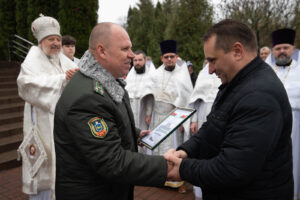 За богослужением молились начальник Гомельской пограничной группы полковник Винников Дмитрий Александрович и личный состав погрангруппы.