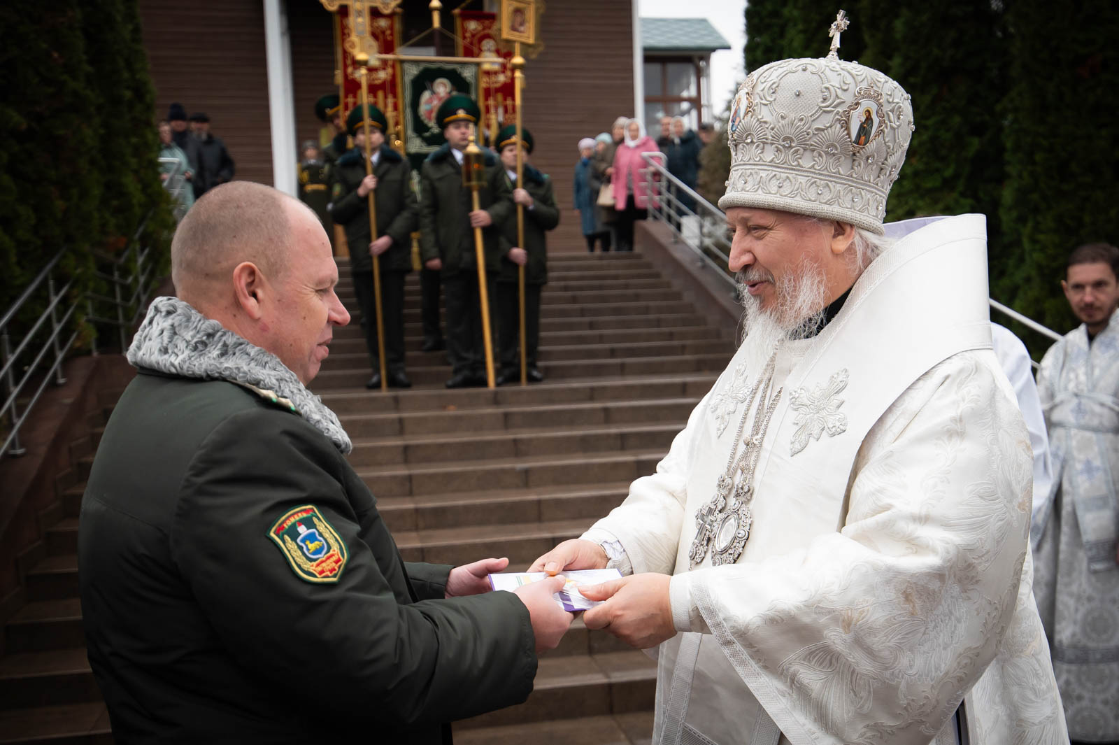 За значительный вклад в развитие сотрудничества между Гомельской пограничной группой и Гомельской епархией начальник группы полковник Дмитрий Александрович Винников был награждён медалью святого праведного Иоанна Кормянского III степени, а подполковник Алексей Игоревич Смагин удостоен архиерейской грамоты.